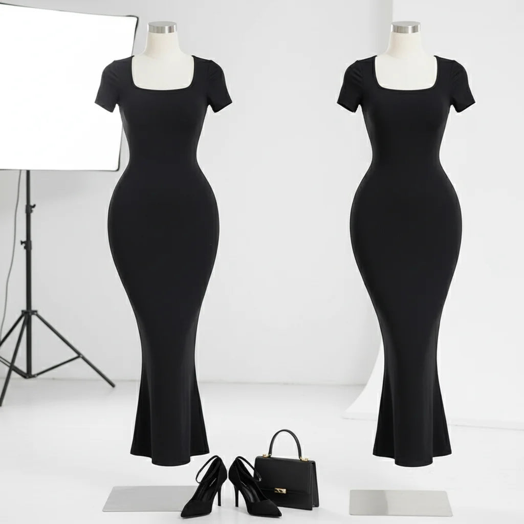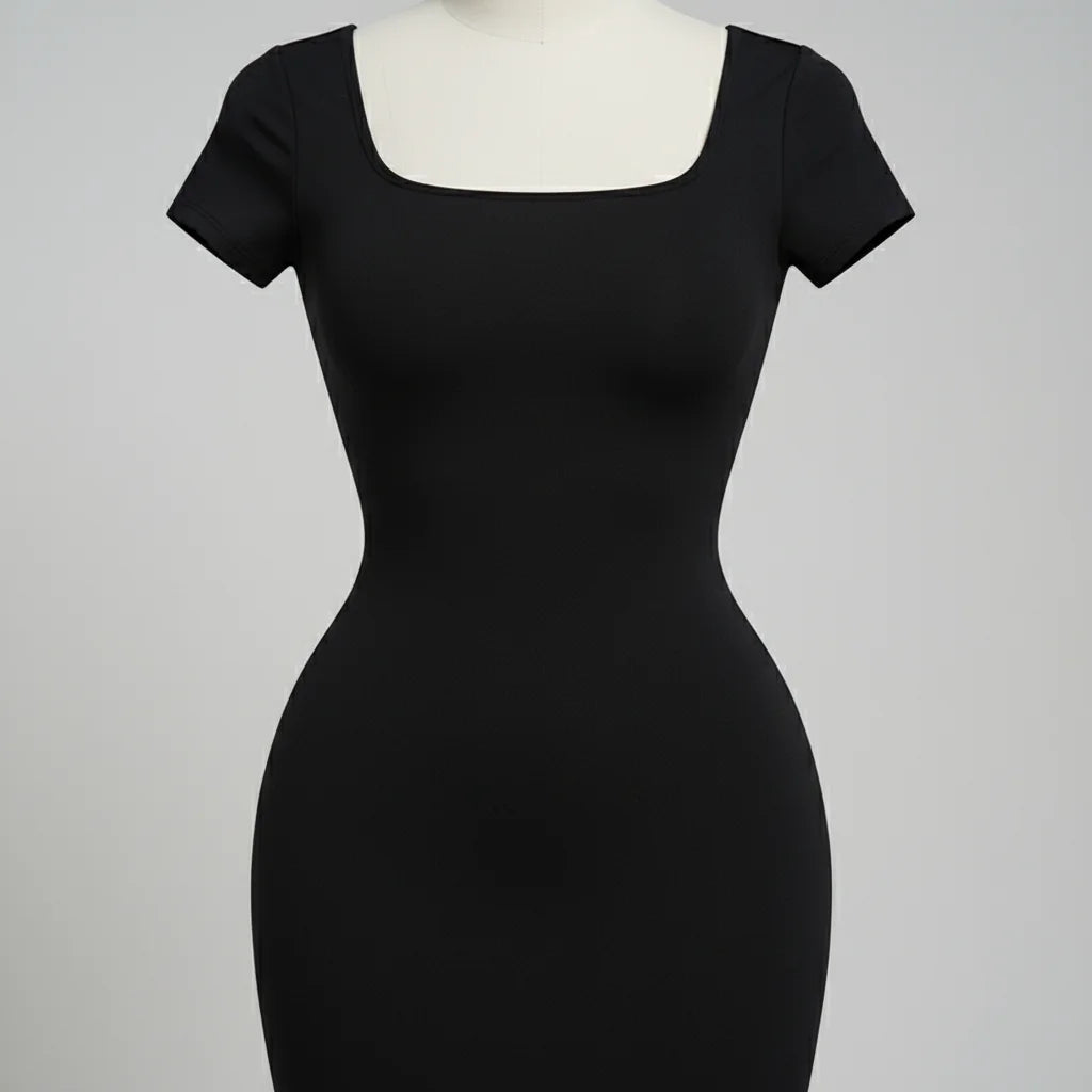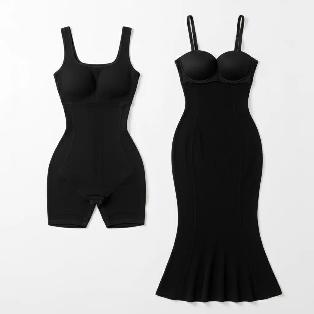 It's a revolutionary 2-in-1 design, combining a stylish bodycon dress with integrated, seamless tummy control shapewear. Get a complete, sculpted look effortlessly.