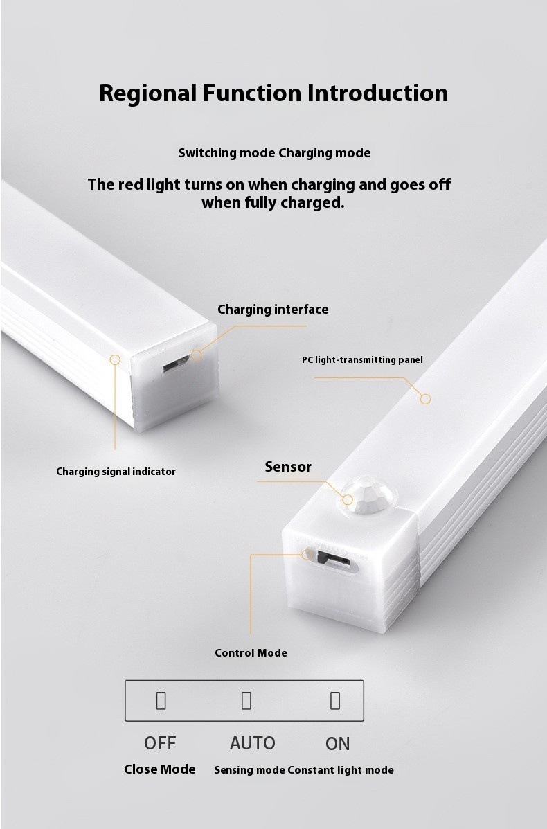 Led Human Body Induction Magnetic Suction Cabinet Strip Small Induction Night Lamp USB Charging Cabinet Induction Light Bar